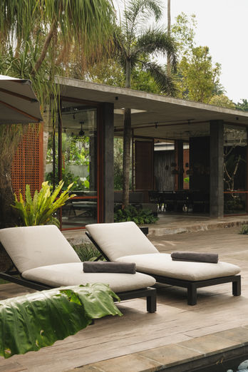 Villa wabi-sabi dans un écrin de jungle, contraste entre le vert et le noir. Plongez dans l'atmosphère unique de cette maison de luxe à Ubud.