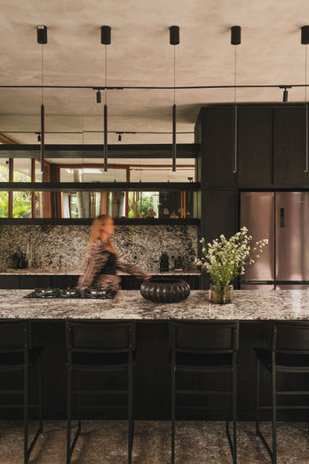 Nous avons travaillé sur ce projet dès sa conception, alors que les clients étaient encore en phase d'élaboration des plans. Le processus a duré deux ans et nous avons été présents à chaque étape. Nous avons conçu la cuisine, installé les meubles tels que les placards des chambres et les meubles de salle de bain, choisi les fournisseurs et les matériaux, et bien sûr géré tout le suivi de production jusqu'à l'installation finale de la décoration. Nous sommes très fiers de vous présenter aujourd'hui cette villa qui occupe une place particulière dans nos projets.