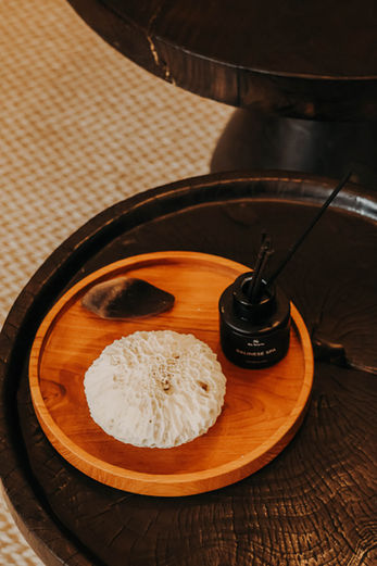 The interior identity is defined by a curated camaïeu of terracotta and ochre, reflecting the earthy brilliance of the Bali landscape. The home’s artistic centerpiece is a bespoke wallpaper insert in the main salon, featuring abstract, rounded geometric shapes that add a contemporary, fluid edge to the villa's clean lines.